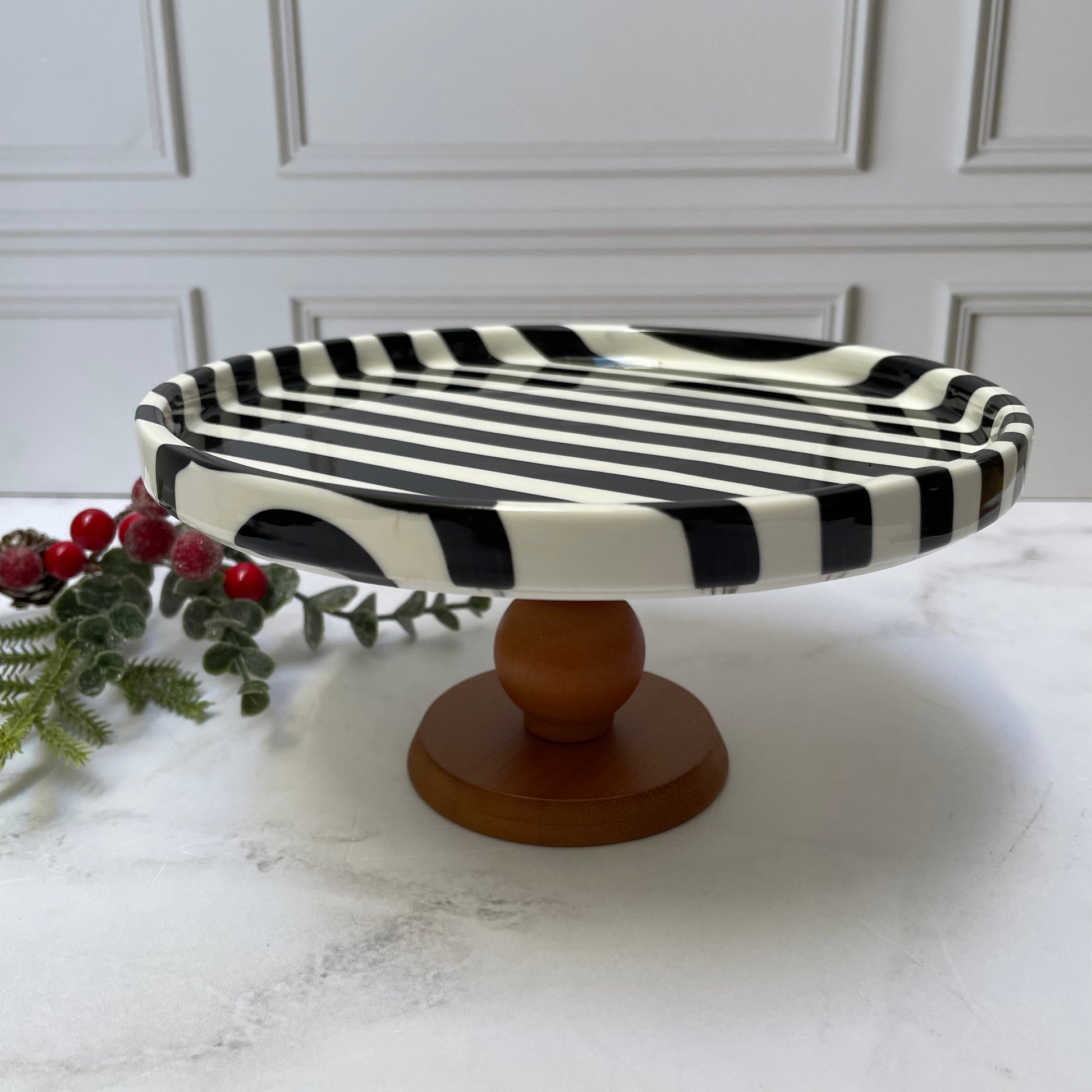 incluye un elegante plato a rayas con base de madera ( 18 x 9 cm)