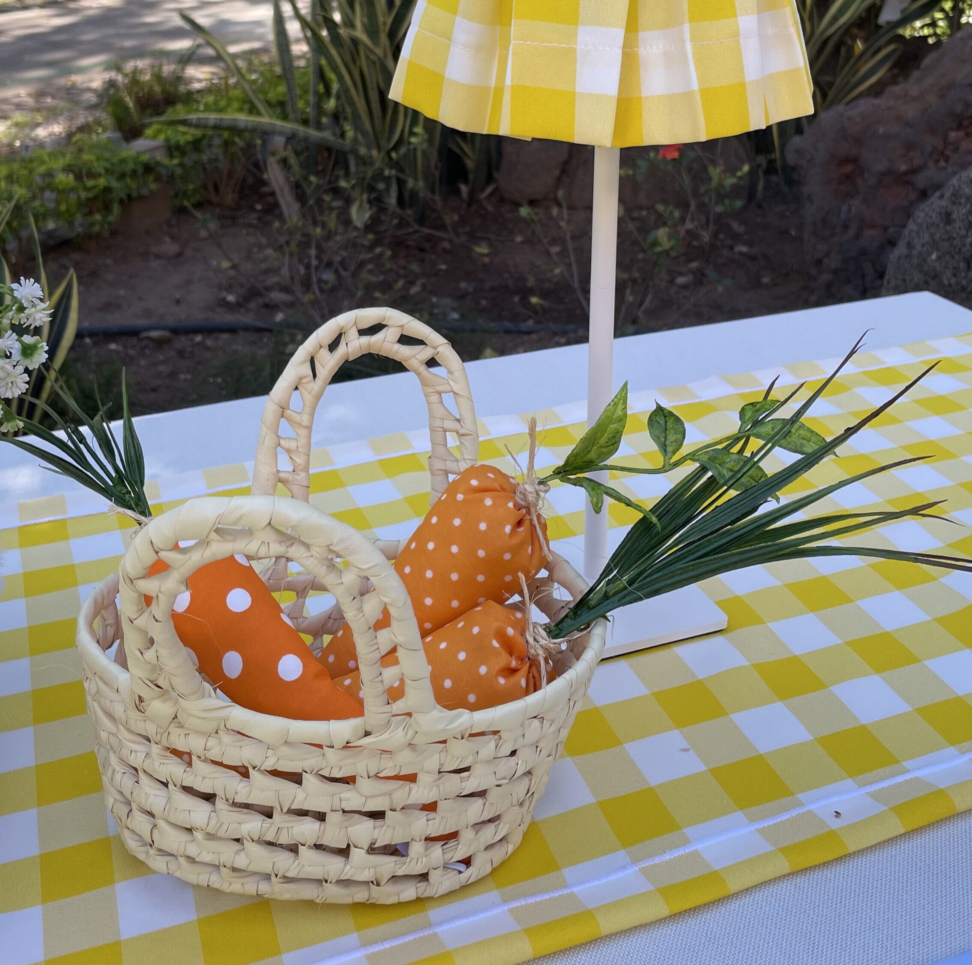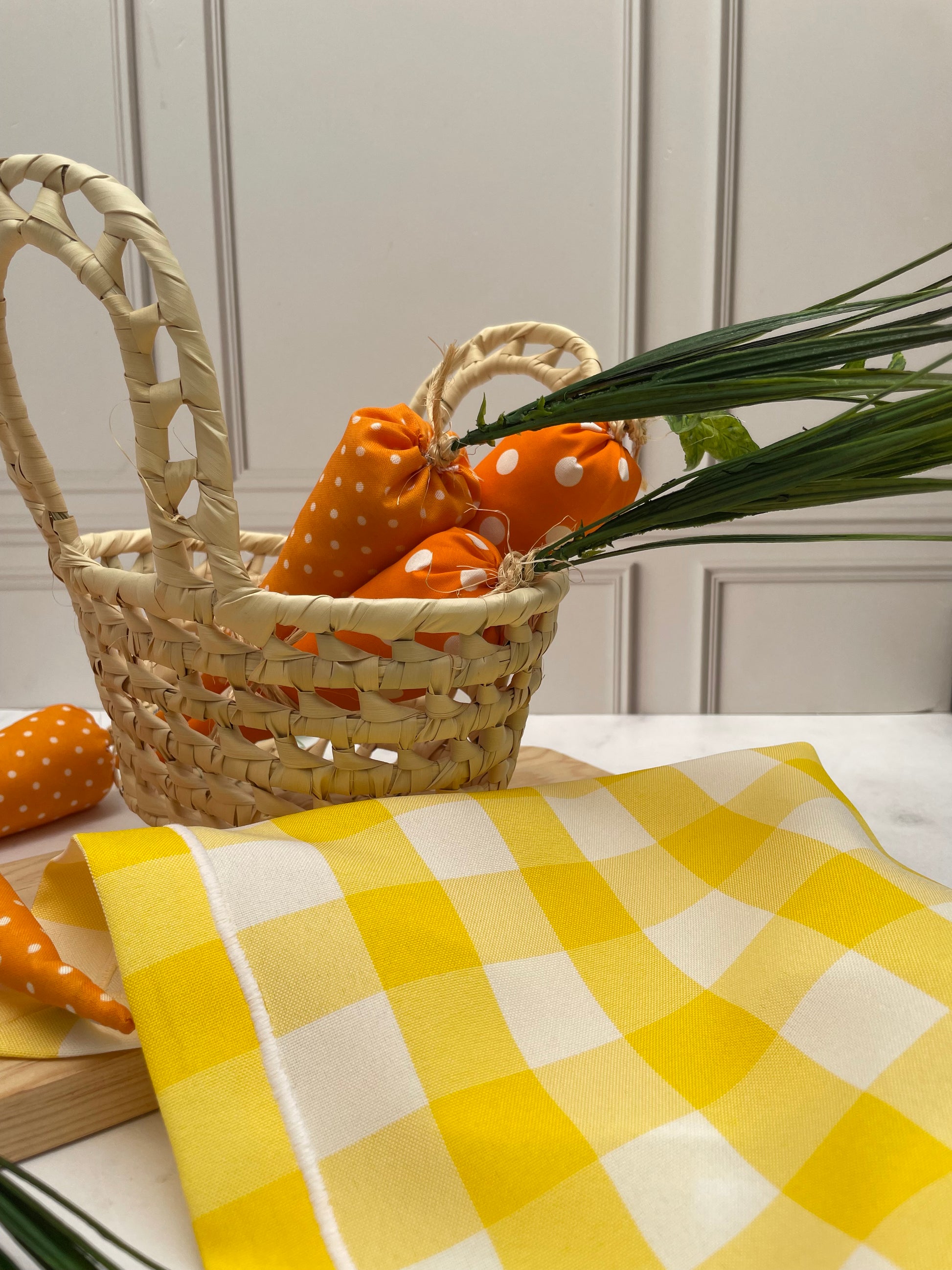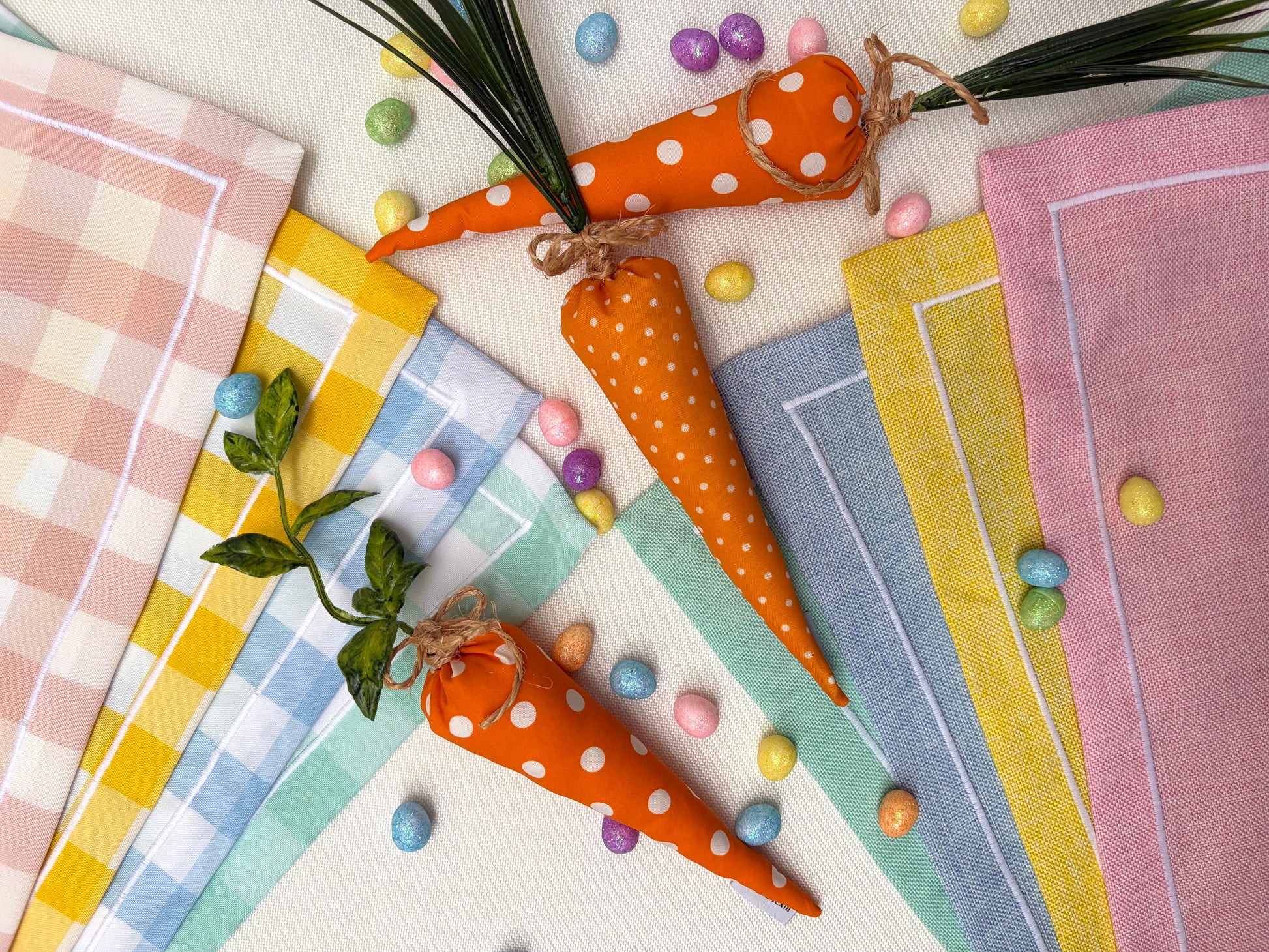 3 zanahorias de tela elaboradas por Fábrica Textil para la Colección Pascua Pastel.