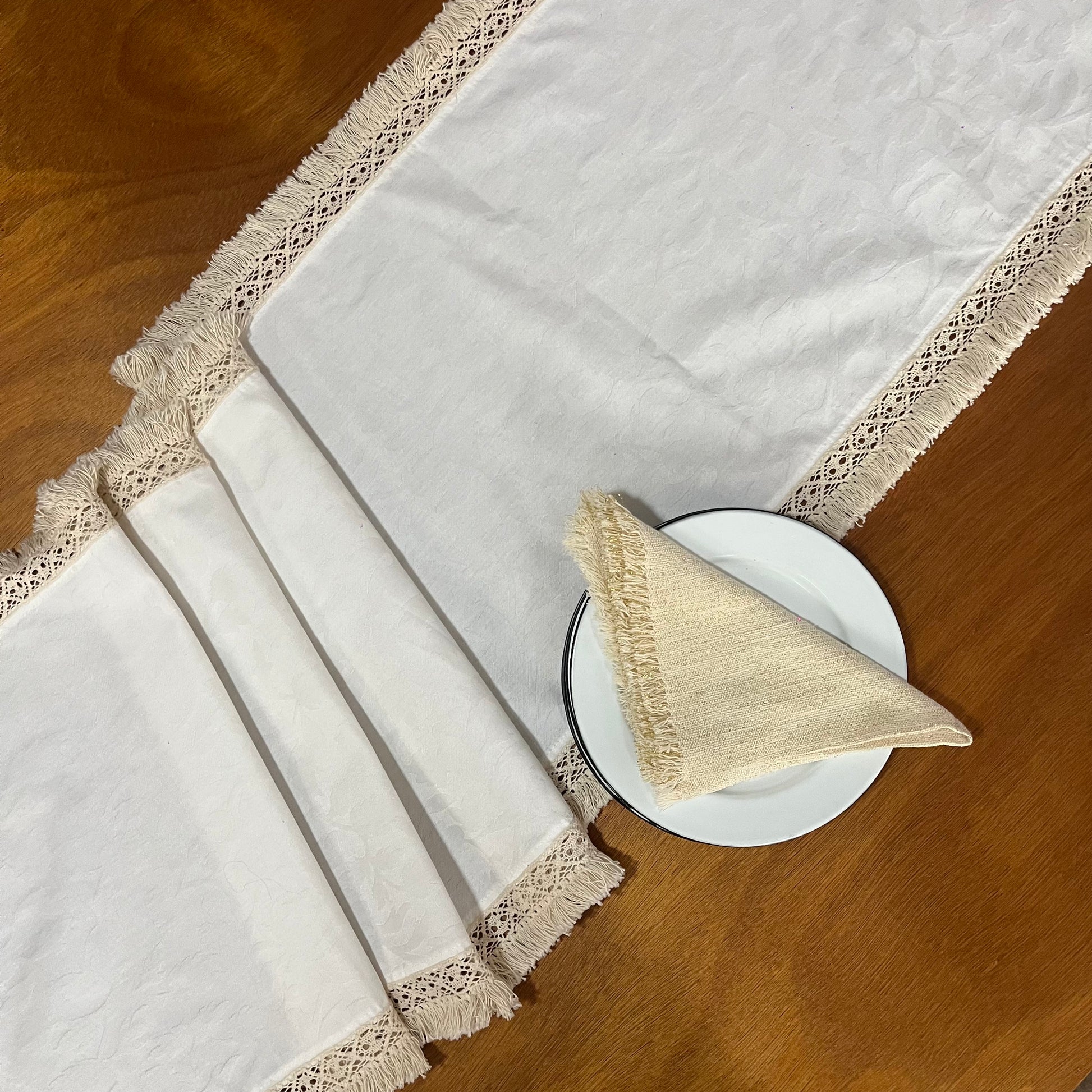 Toda nuestra mantelería está pensada para manejo en casa. Lavar a máquina en ciclo delicado, o bien, a mano si tiene algunas aplicaciones o son telas teñidas de manera artesanal.