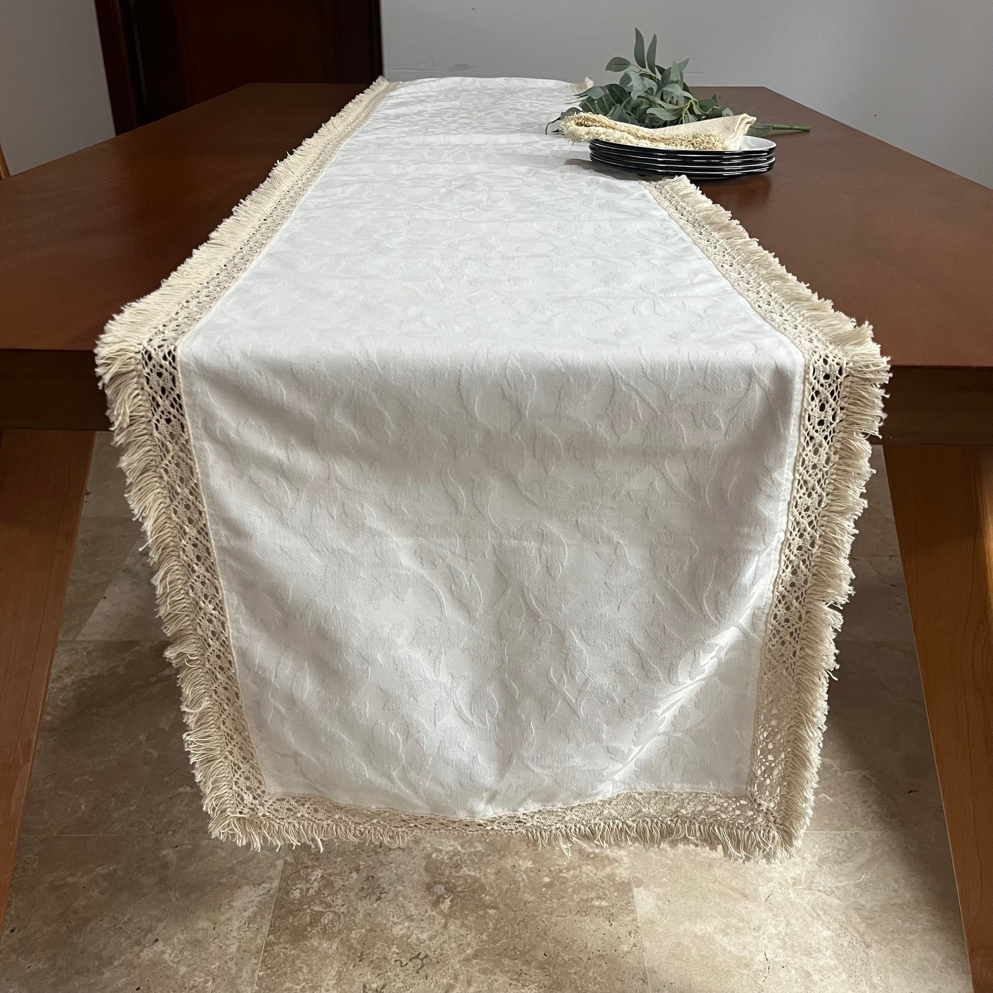 Este camino tiene un look muy especial, por el diseño de su tela en realce.
