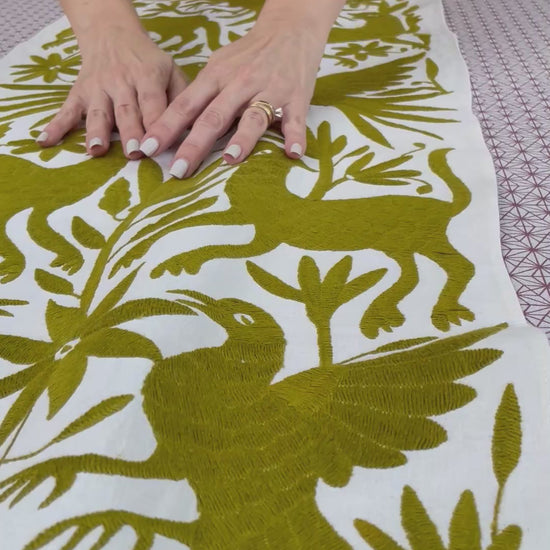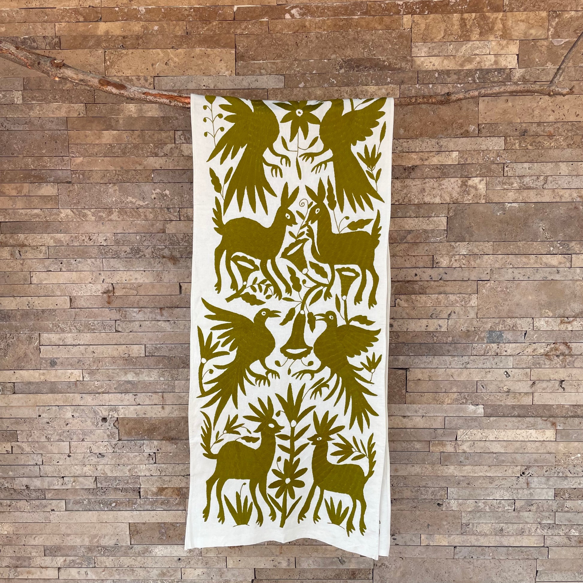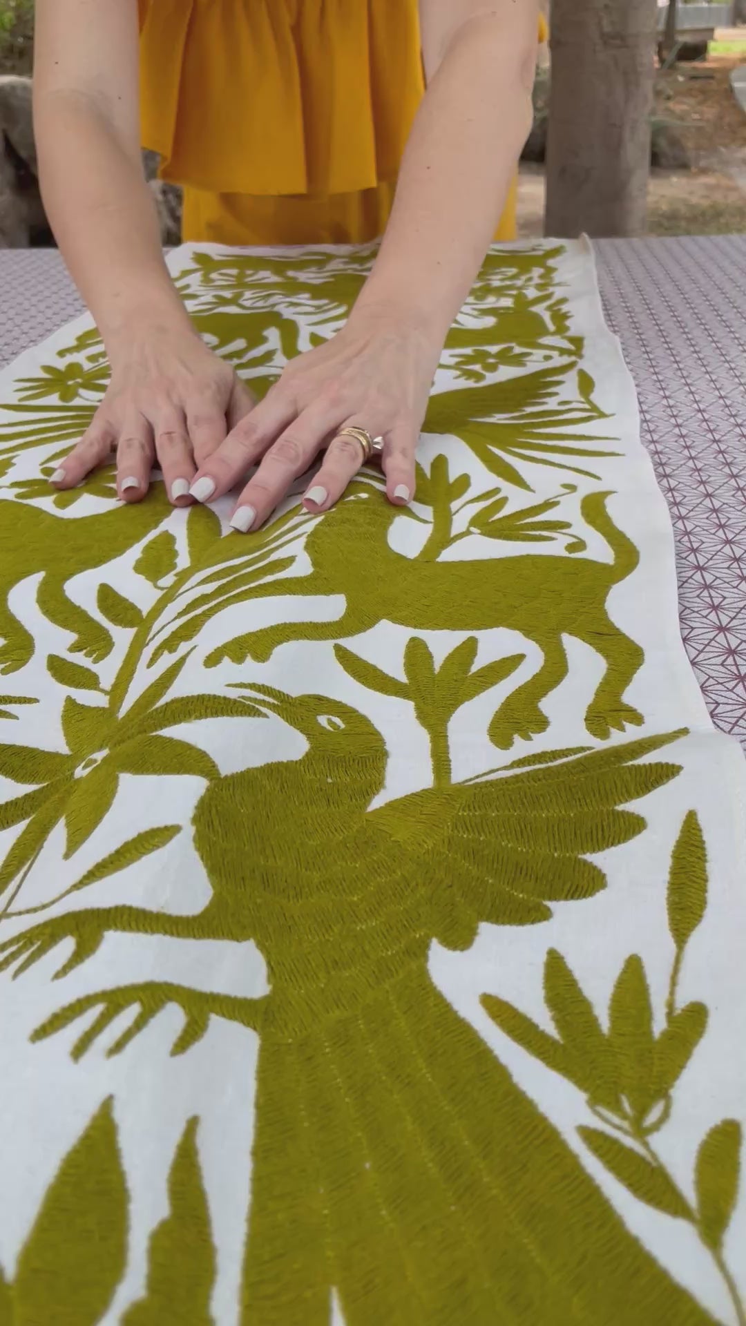 Camino elaborado en manta bordada a mano con motivos de Tenangos.