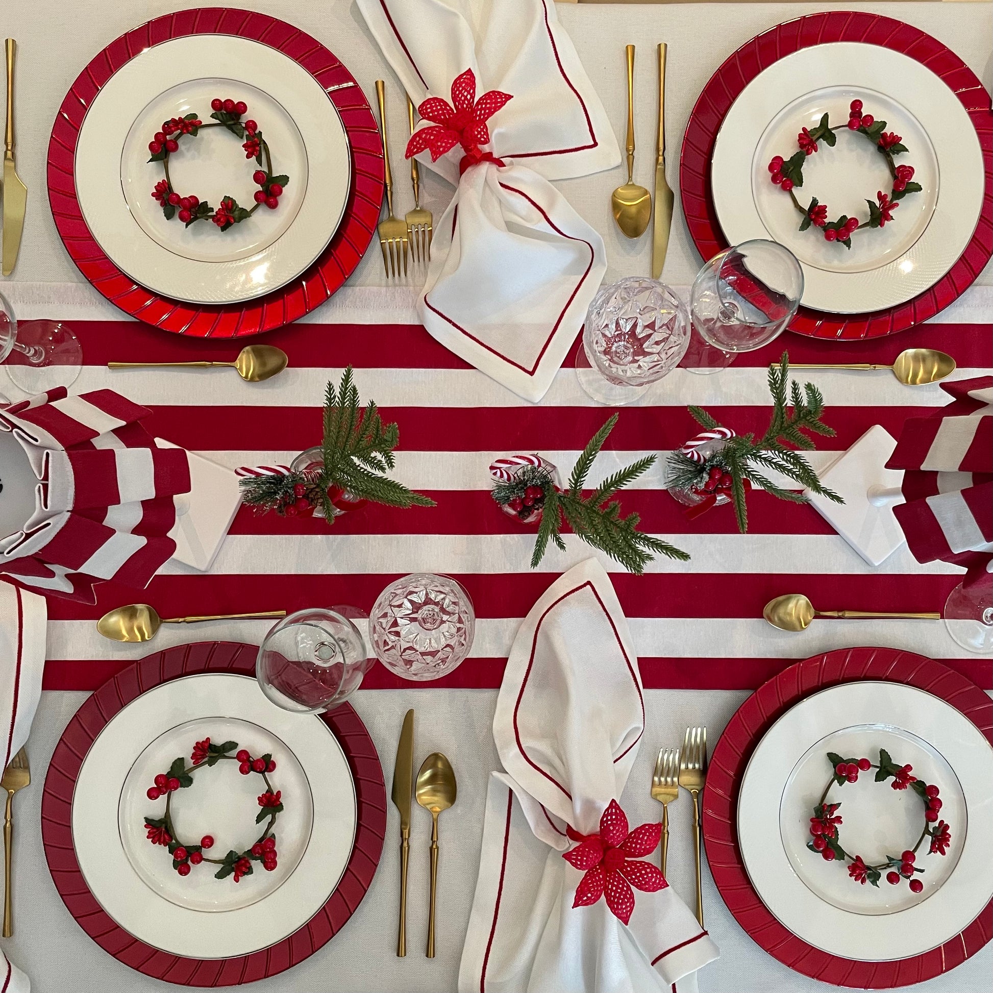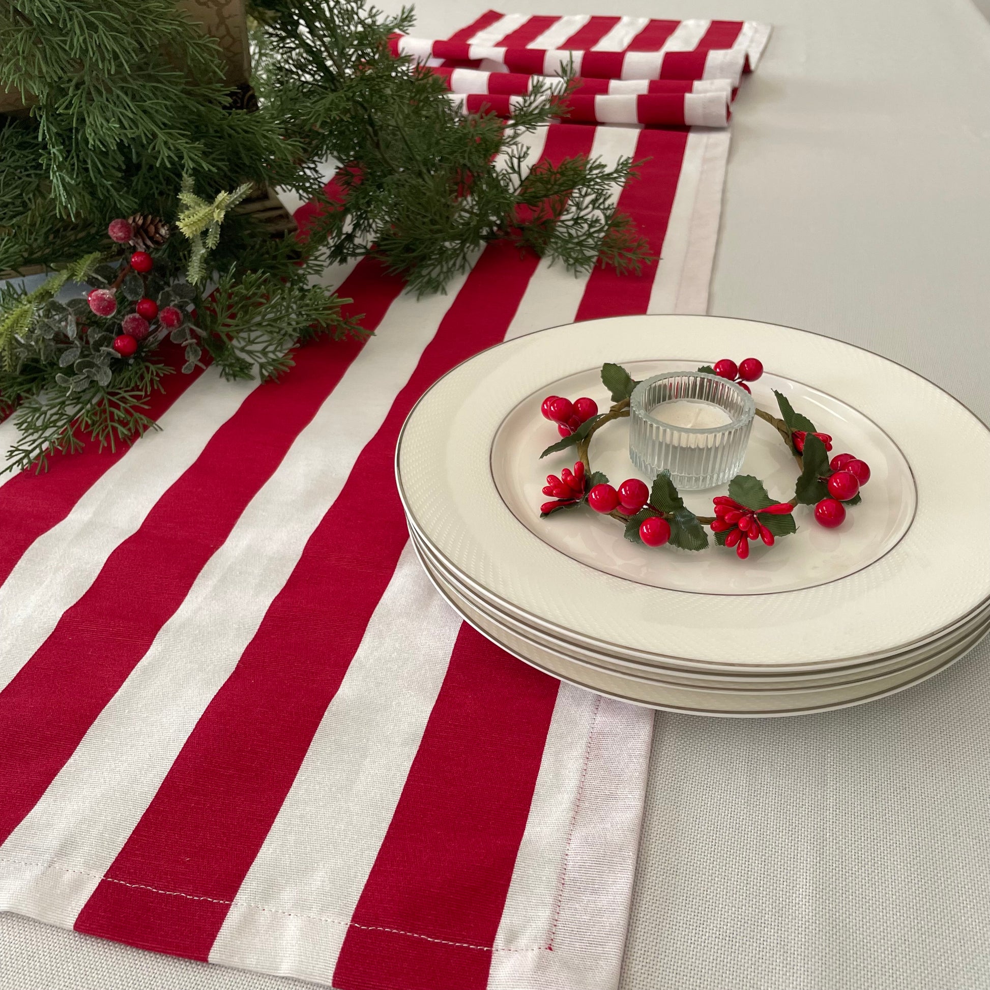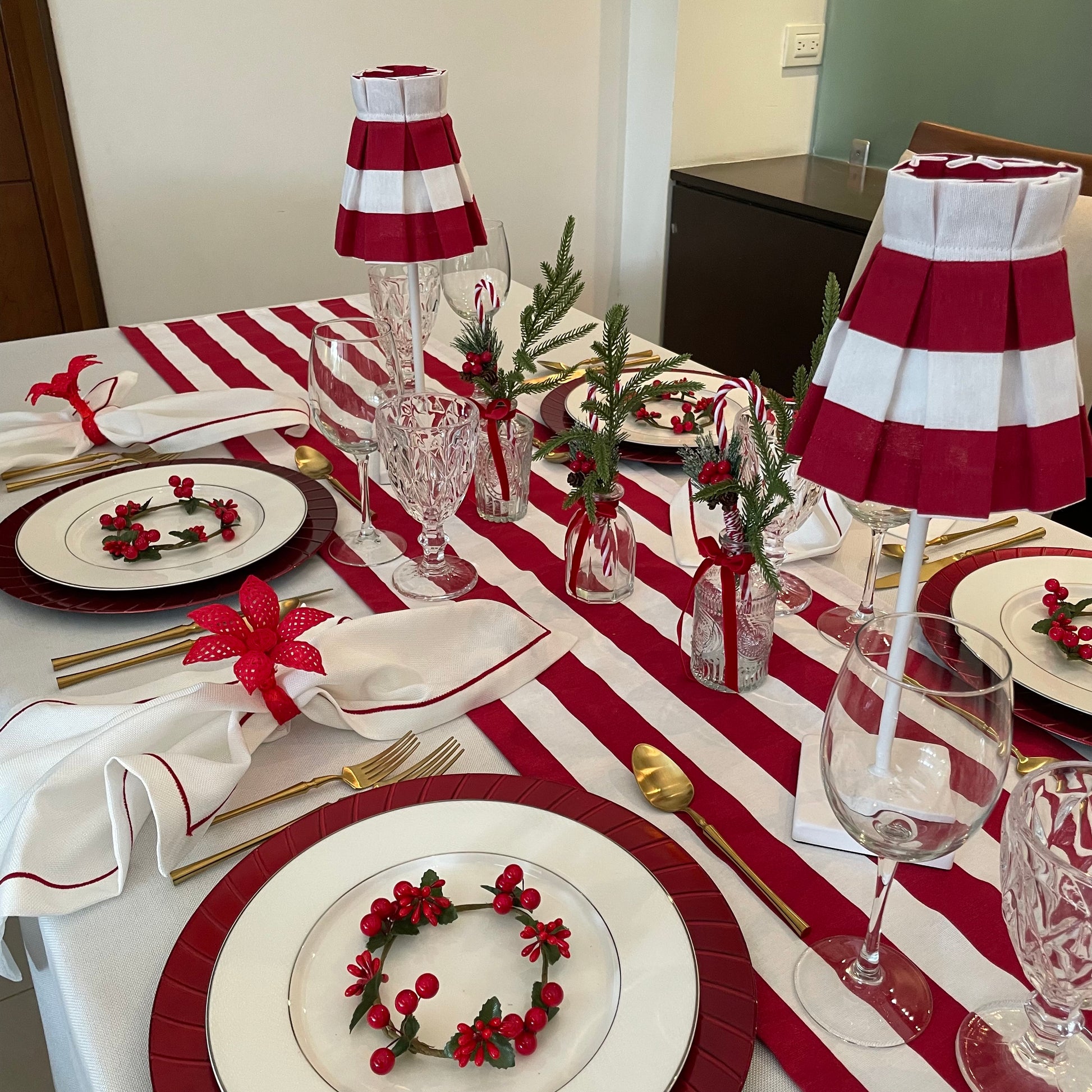 Diseño clásico a rayas que invita a una mesa para montaje a cualquier hora del día.