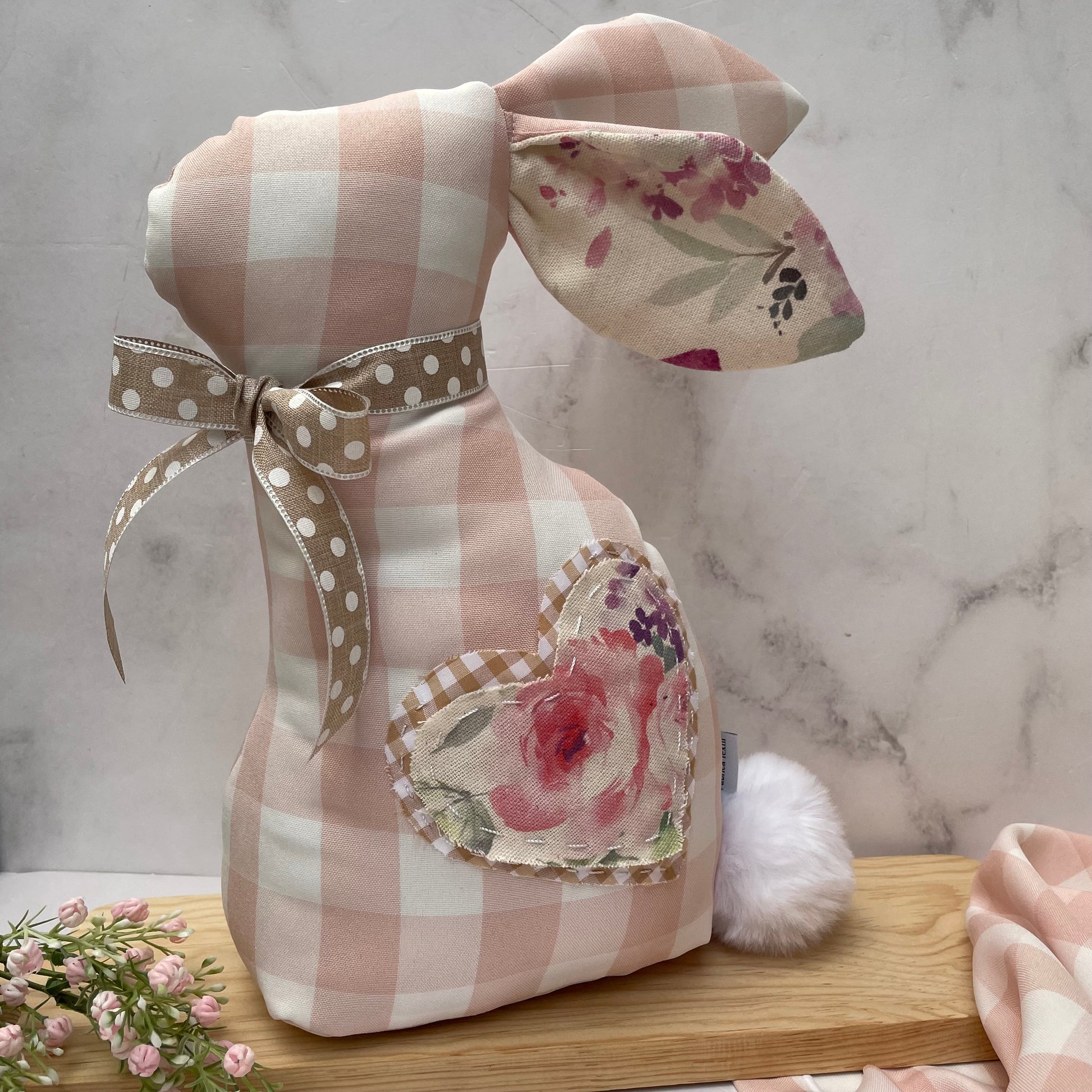 Conejo de tela a cuadros rosa,diseñado y elaborado manualmente.