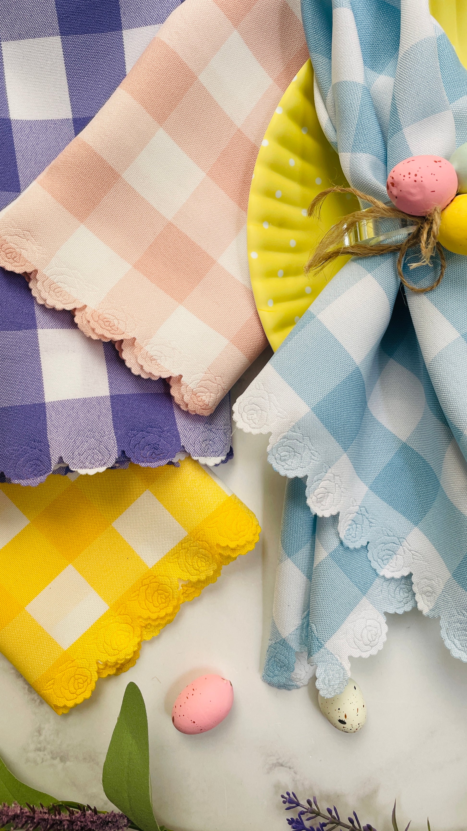 Un conjunto lleno de alegría con 4 colores que componen el set, una servilleta de cada color incluida: rosa, azul, lila y amarillo.