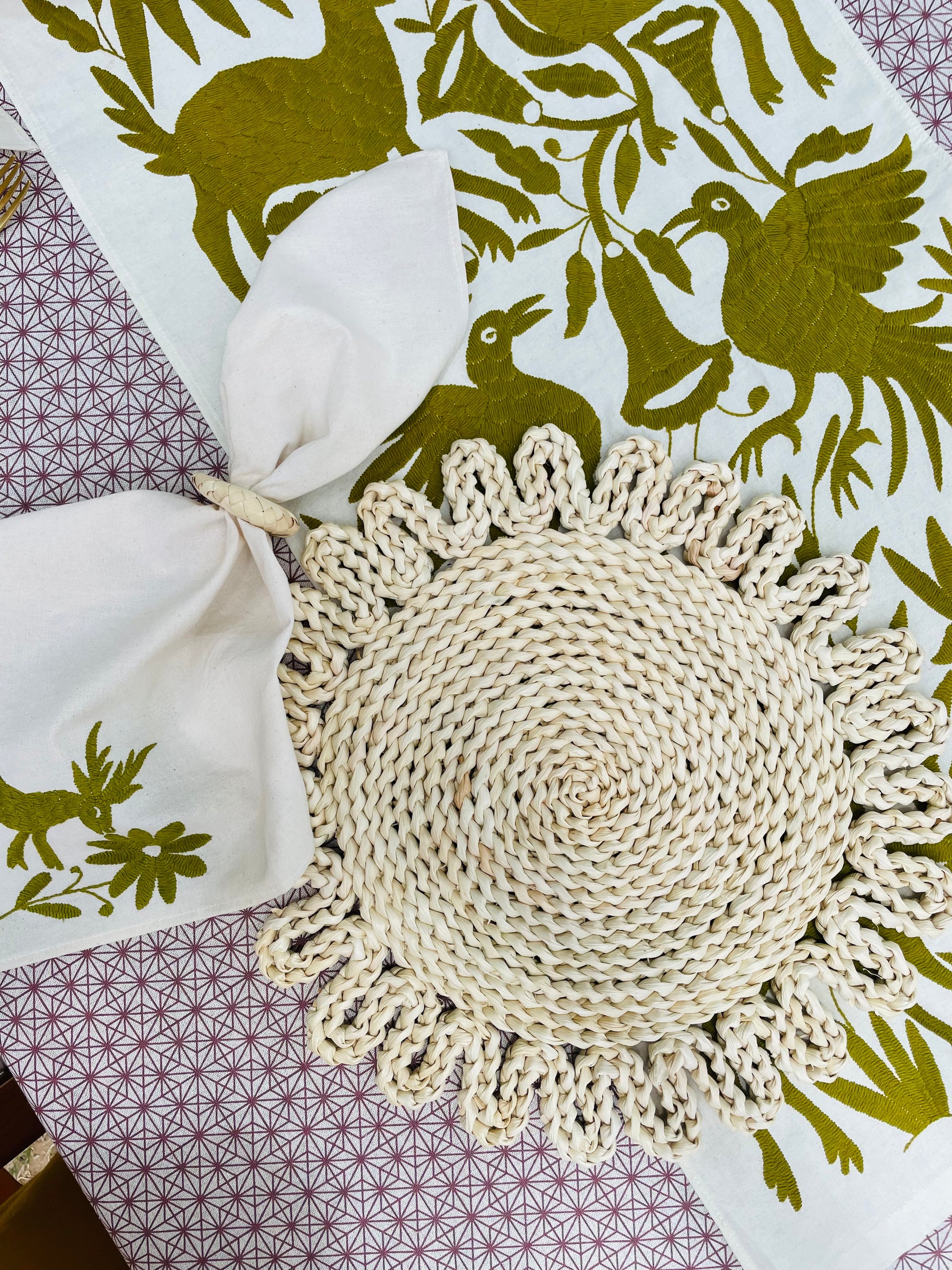 Toda nuestra mantelería está pensada para manejo en casa. Lavar a máquina en ciclo delicado, o bien, a mano si tiene algunas aplicaciones o son telas teñidas de manera artesanal.